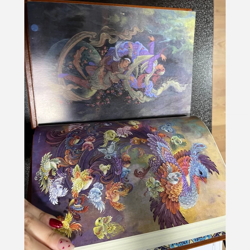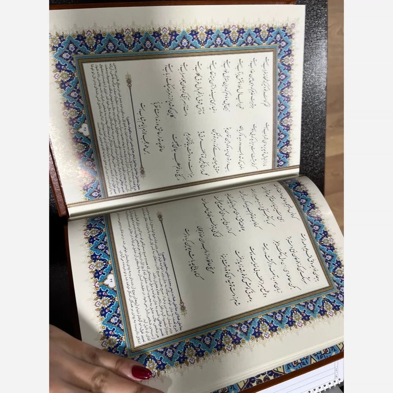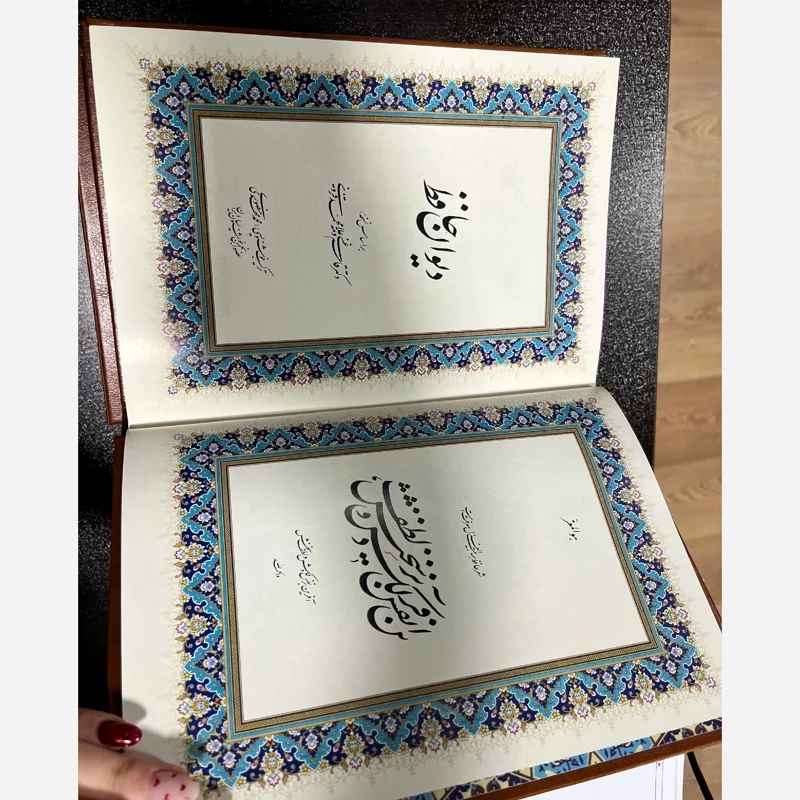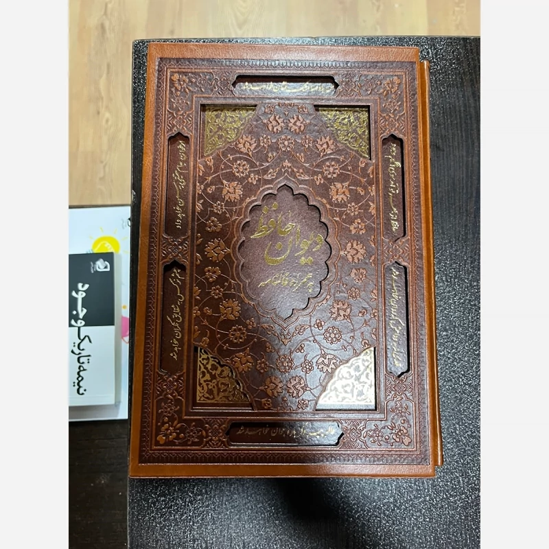 دیوان کامل حافظ با قابی چوبین جلد چرمی کاغذهای با گیفیت گلاسه با تفسیر عرفانی اشعار و تعبیر و معنی اشعار